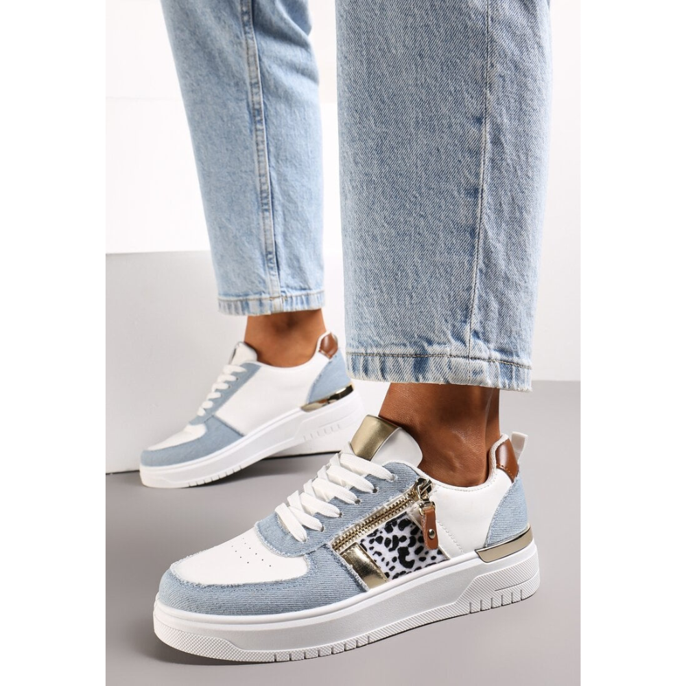 Maak kennis met de Yasmine™ - Denim Sneaker: een stijlvolle allrounder die elke outfit nét dat beetje extra geeft. De frisse witte basis, gecombineerd met denim accenten en een speelse sierrits, zorgt voor een unieke twist. Of je nu gaat voor een nonchalante jeans-look of een vrouwelijke outfit met een jurkje – deze sneaker tilt jouw stijl naar een hoger niveau.